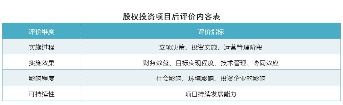 2005年,國(guó)務(wù)院國(guó)資委印發(fā)《中央企業(yè)固定資產(chǎn)投資項(xiàng)目后評(píng)價(jià)工作指南》,對(duì)中央企業(yè)固定資產(chǎn)投資項(xiàng)目的后評(píng)價(jià)工作進(jìn)行指導(dǎo)規(guī)范。但是對(duì)比而言,股權(quán)投資相對(duì)于固定資產(chǎn)投資在投資目的、投資方式、決策程序、風(fēng)險(xiǎn)管控方式、綜合效益評(píng)價(jià)等方面都有不同。針對(duì)固定資產(chǎn)投資、股權(quán)投資,后評(píng)價(jià)內(nèi)容自然也是有所區(qū)分、側(cè)重。