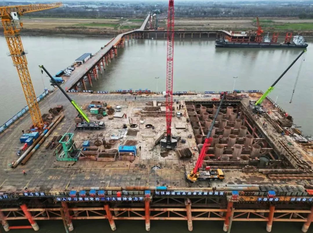 池州長江公鐵大橋是跨長江的綜合性交通工程,工程規(guī)模大、科技含量高、施工難度大、施工環(huán)境復(fù)雜。3#主墩位于長江樅陽段,距北岸大堤約770米,為大直徑超長群樁基礎(chǔ),由77根直徑2.8米的鉆孔灌注樁組成,設(shè)計(jì)樁長117.5米,鉆孔深度達(dá)155米,單樁混凝土方量744方,是國內(nèi)鉆孔深度最深的橋梁鉆孔樁。